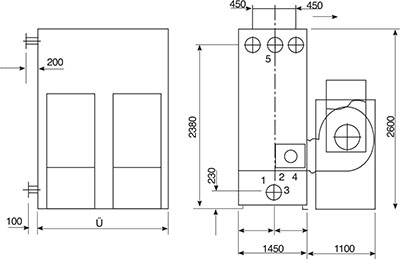 Our ÜÇ-B type hot air appliances manufactured by our company in different types shown in TABLE 2 up to a heating capacity of 60,000 Kcal/h for 90/70 C hot water as standard, are designed to provide high calorific values despite occupying small volumes. they have been The device fans stop and work with the warning of an electric room thermostat to be mounted at a central point of the hall, and the room temperature is kept constant. If necessary, a thermostat can be controlled by several appliance motors. Larger capacity devices are non-standard and are manufactured on special order.